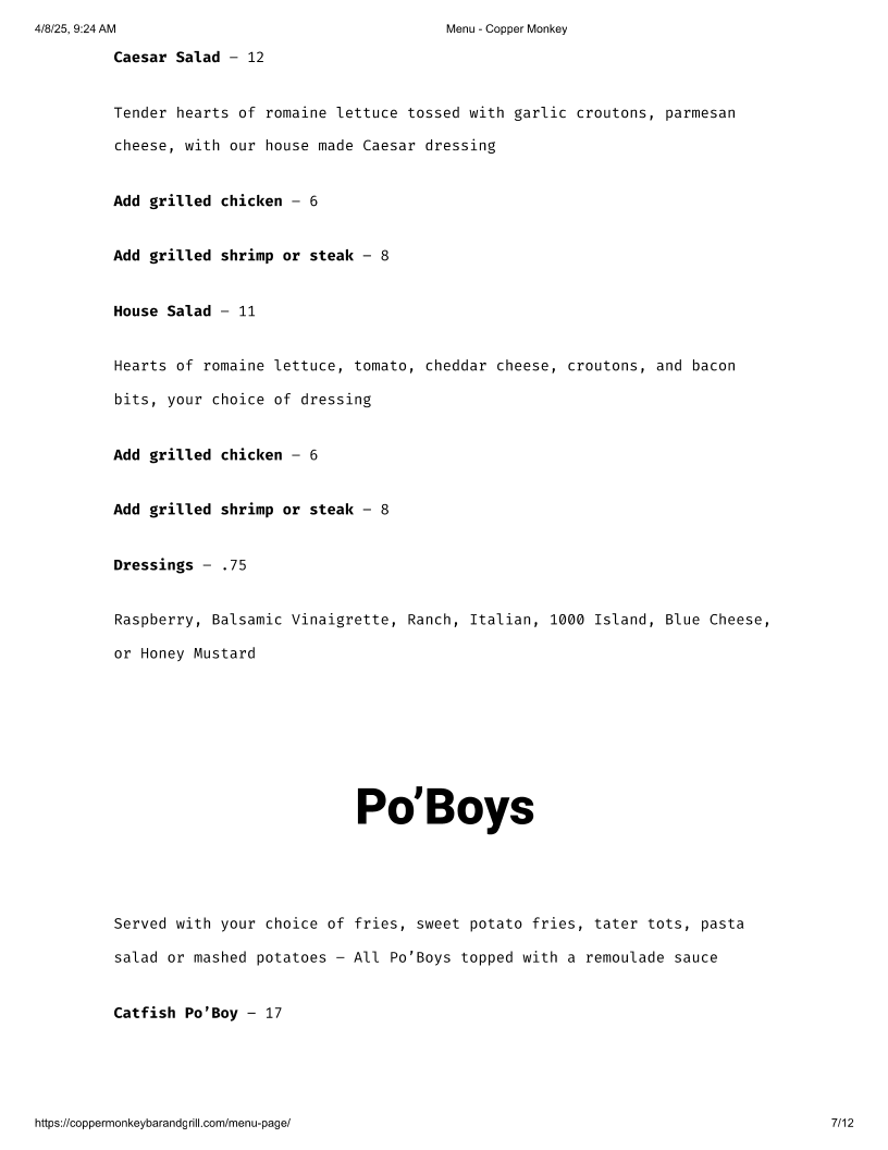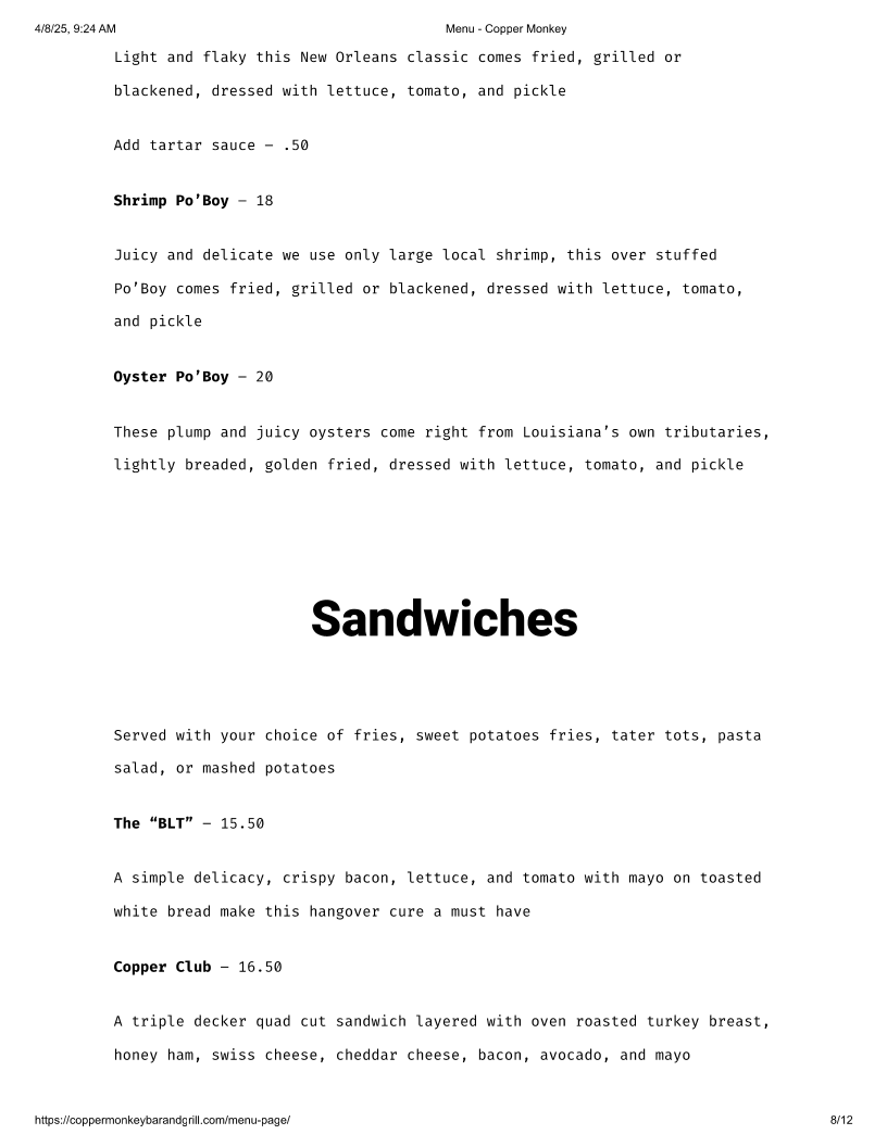 Step into the heart of the French Quarter at Copper Monkey Bar & Grill, where you can escape the crowds and enjoy an authentic local experience. Nestled at 725 Conti St, New Orleans, LA 70130, this vibrant bar and grill promises a warm atmosphere paired with an enticing menu that celebrates the spirit of Louisiana.