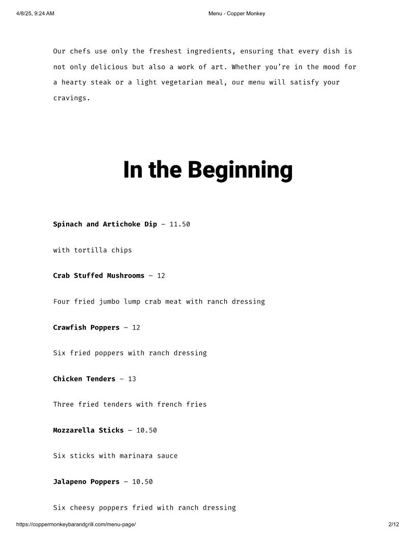Copper Monkey’s menu features an array of mouthwatering offerings that showcase the best of bar cuisine. Start your culinary journey with their delightful Spinach and Artichoke Dip, served warm and paired with crispy tortilla chips — a perfect starter for sharing or indulging solo at just US$11.50. For those craving something hearty, the Crab Stuffed Mushrooms are a highlight, featuring four jumbo lump crab meat bites fried to perfection and served with ranch dressing at US$12.00. And don’t miss the Crawfish Poppers, a local favorite bursting with flavor!